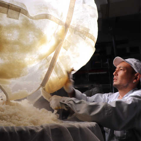 Kissui è un Junmai creato con riso Akebono lucidaro al 70%, fermentato con lievito di pesca bianca, che dona al sake una nota fresca e agrodolce. A differenza del metodo tradizionale, qui riso, koji e acqua vengono aggiunti in un'unica volta, e la fermentazione viene interrotta precocemente per mantenere un tenore alcolico più basso e preservare la dolcezza naturale del riso trasformato dal koji.